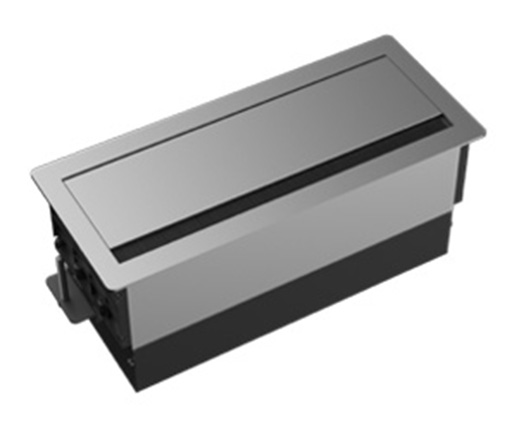 The flip-up cover with can be opened 90 , and When closing, it is damped and descends slowly. The cover panel easily flips opens providing better access to multiple outlets , creating a more functional and organized desk .