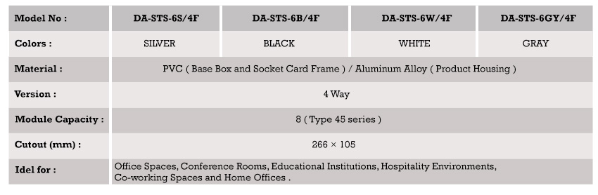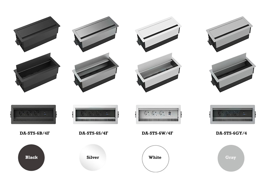 The combination of the sleek aluminum profile and rounded corners gives the design a clean and neat appearance, and the shape makes it the perfect workstation outlet for all your home or office needs .