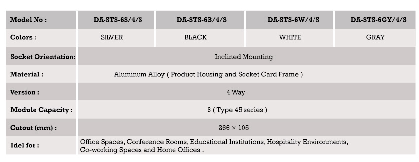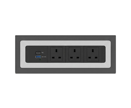 The combination of the sleek aluminum profile and rounded corners gives the design a clean and neat appearance, and the shape makes it the perfect workstation outlet for all your home or office needs .