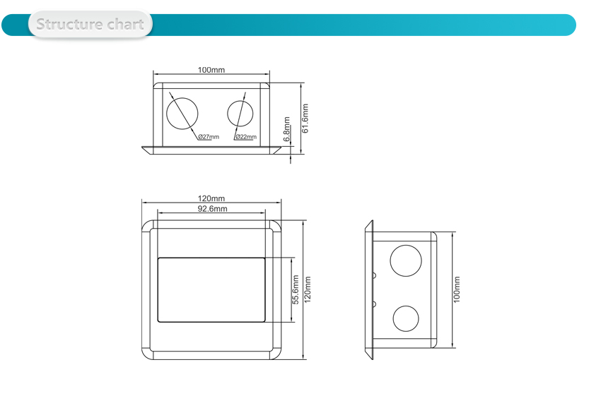 | Cutout | 103 × 103 mm | 103 × 103 mm |