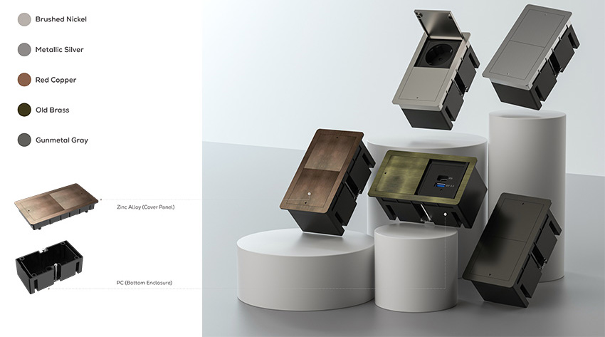 BC-0402 desktop socket is designed as an modern slide cover socket with muti-functional configuration,