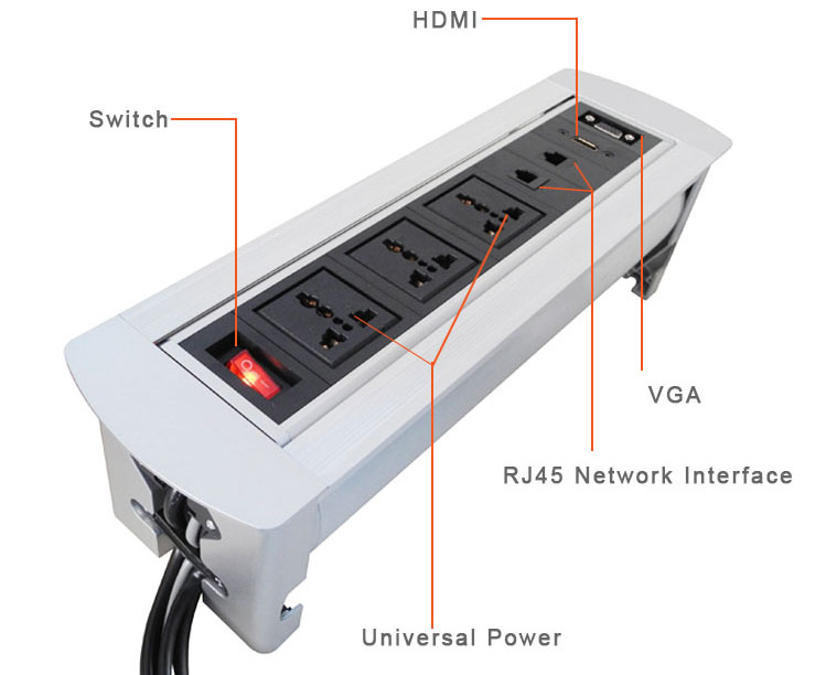 It’s widely used for the high-tier office table, conference room table AV solution, hotel room and training room.