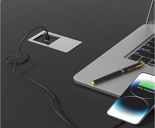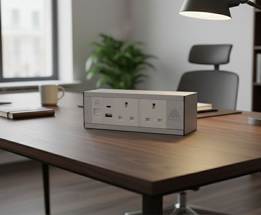 DOUBLE-A Desktop Sockets are a fantastic solution for providing integrated power and data communication services to modern working and living spaces. The stunning units not only eliminate clutter of excess cables, they also enhance the aesthetic design of your work surface.